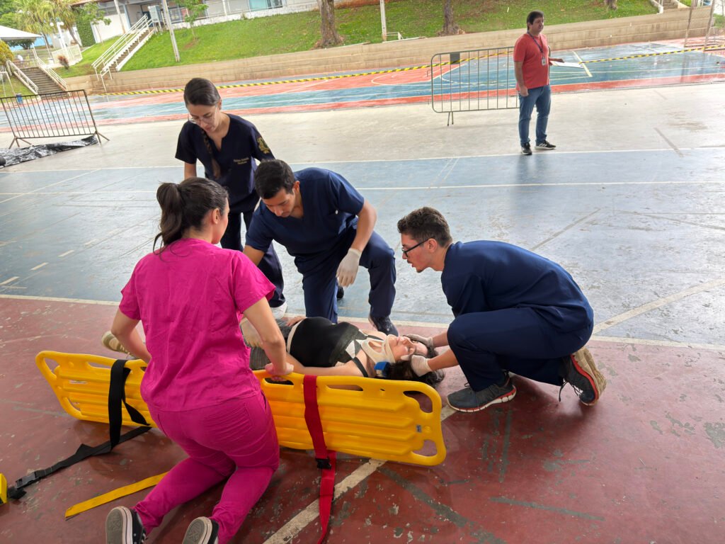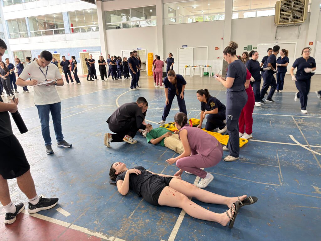 Além dos estudantes de Medicina, o simulado contou com a participação dos cursos de Enfermagem e Medicina, cujos acadêmicos contribuíram como atores nas cenas simuladas, representando vítimas com diferentes níveis de gravidade.