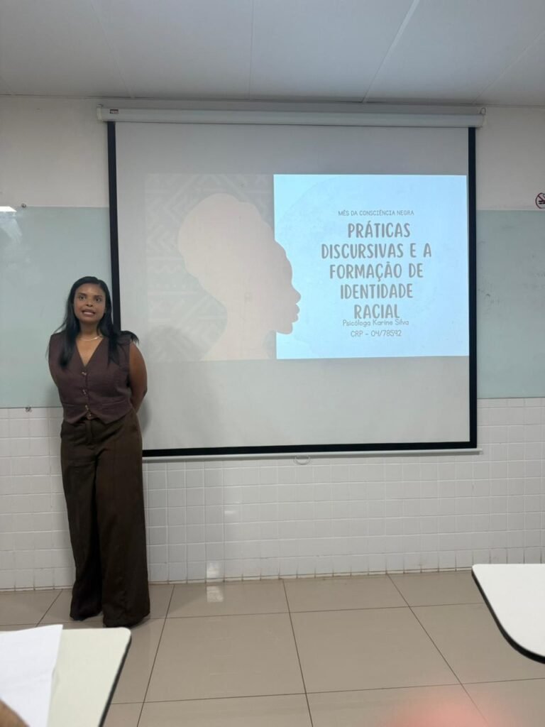 A Univértix realizou, no dia 11 de novembro, um momento formativo em celebração ao Mês da Consciência Negra, reunindo alunos dos cursos da área da saúde para refletir sobre identidade racial, linguagem e práticas discursivas. A atividade foi conduzida pela psicóloga egressa da instituição, Karine Silva, que apresentou uma abordagem sensível e crítica sobre como a linguagem, expressa por palavras, gestos e olhares, pode afirmar identidades ou reproduzir desigualdades.